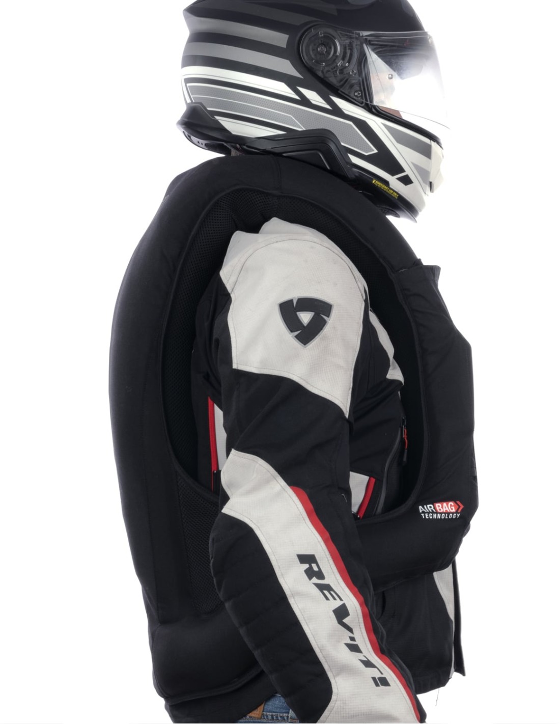 The TOURING EVO airbag system has been designed to effectively cover the most vulnerable areas of the body in the event of an impact: the spine, cervical area, collarbones, rib cage and vital and soft organs (such as the liver, spleen and pancreas). Its design prevents whiplash and hyperflexion injuries by stabilising the neck and torso in the event of an accident.